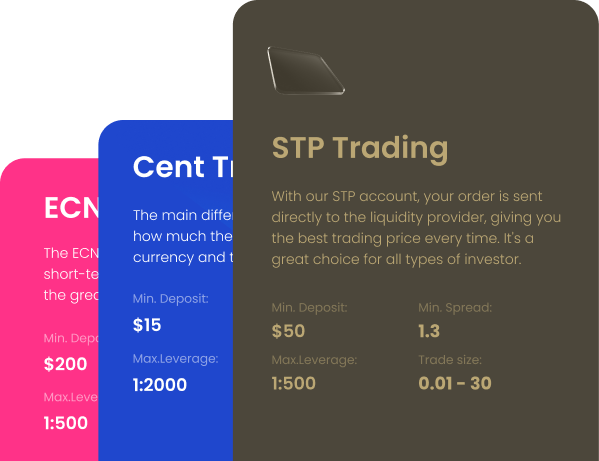 باستخدام حساب التداول STP، يمكنك الاستمتاع بحد أدنى للفارق السعري للعملات الأجنبية يبلغ 1.3 بالإضافة إلى حد أقصى للرافعة المالية يبلغ 1:500. كما هو الحال مع العقود القياسية، باستخدام حساب التداول STP، ستتداول بـ 100,000 وحدة من اللعقد القياسي. يمكنك أيضًا وضع أمر إيقاف عند نسبة 30%، أي أعلى بنسبة 10% من حساب التداول المصغر، ويمكنك التداول بحد أدنى 0.01 من حجم التداول (من العقد القياسي).