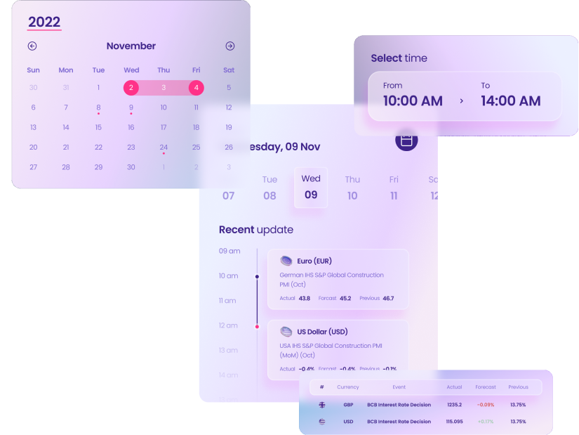 The economic calendar allows you to monitor market-moving events, including monetary policy decisions, scheduled events, news releases, and other economic indicators. These may be announced or released in a report and have a high possibility of moving the financial markets.
